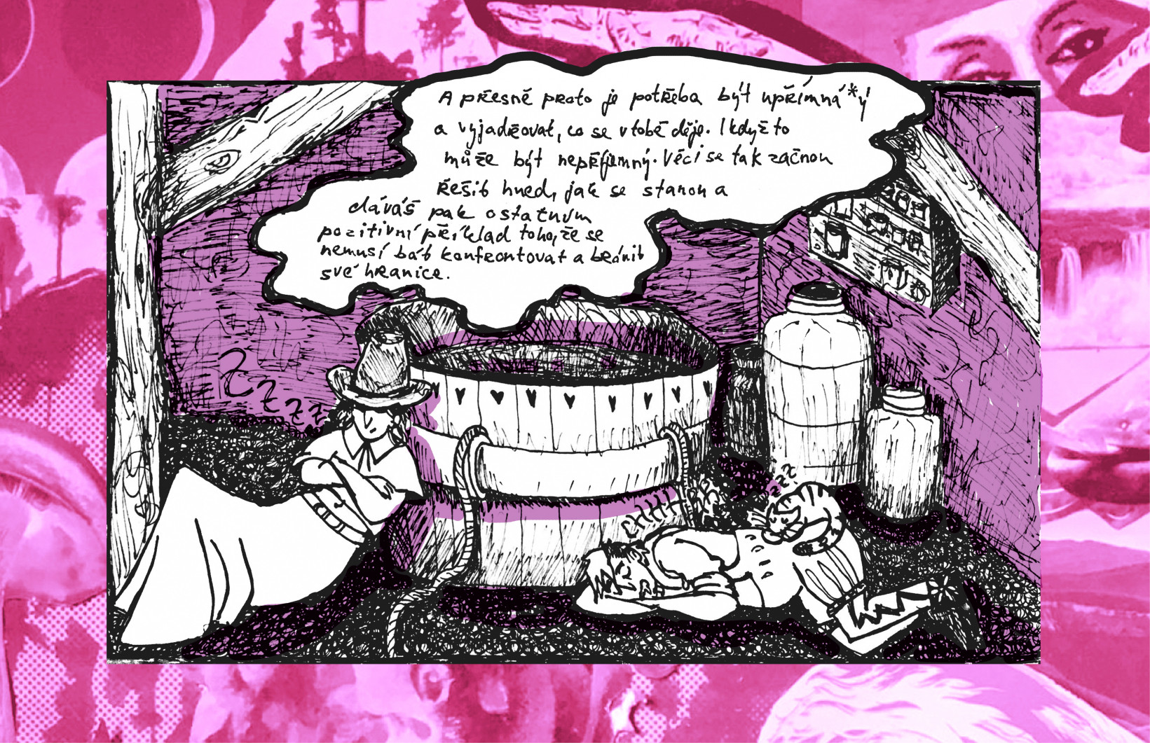 V rámci třetího čísla Bubliny tedy vymezujeme prostor - Brave Space. Prostor pro odvahu, který umožňuje reflektovat nedostatky minulosti, strasti a vášně přítomnosti a utopické i dystopické vize budoucnosti. Prostor podle vašich představ, těch nadějeplných i těch úzkostných.