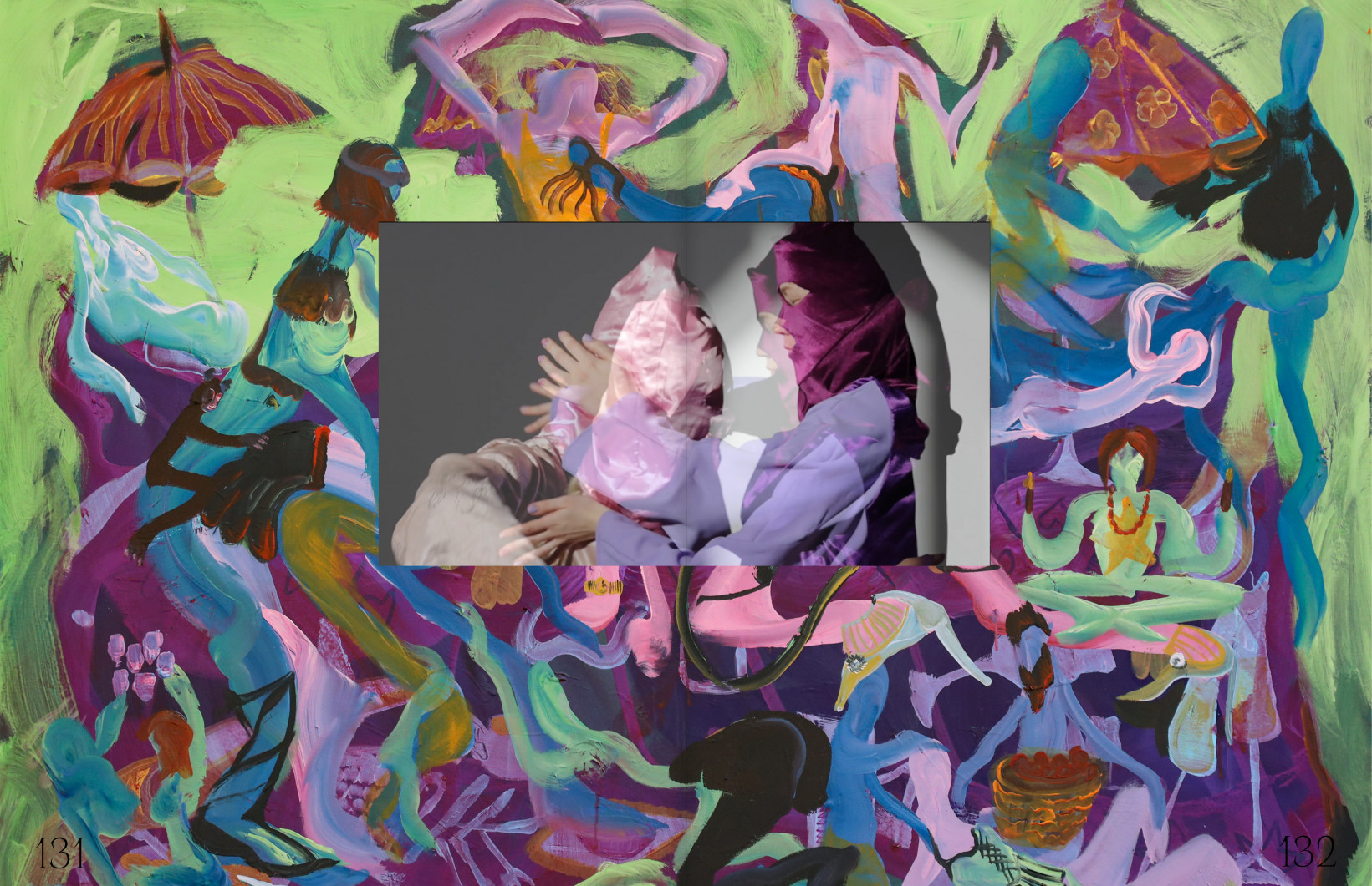 Na zelenou je položená rudě karmínová, divoká, ale jemná transparentní vrstva.