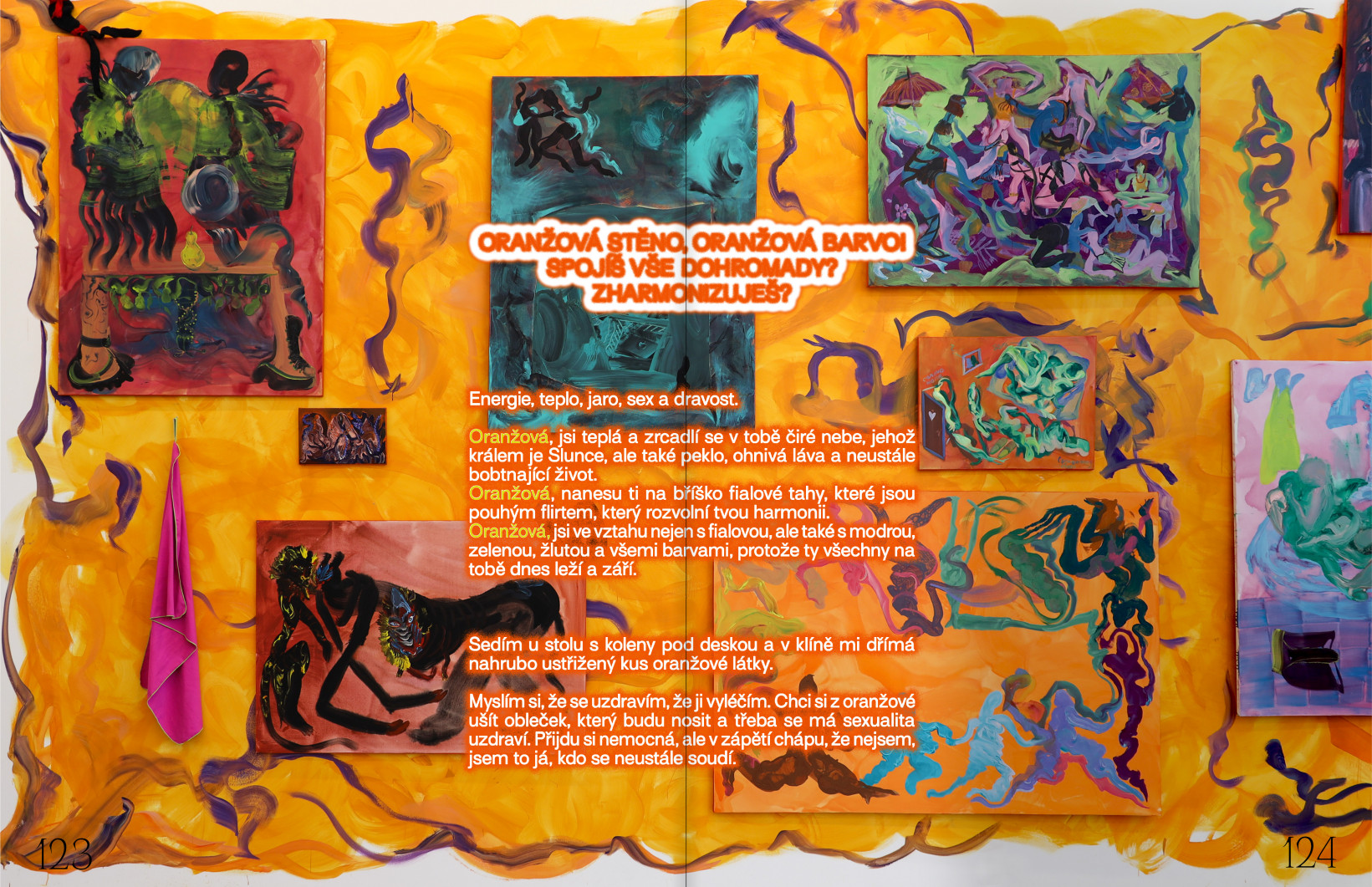 Oranžová, jsi ve vztahu nejen s fialovou, ale také s modrou, zelenou, žlutou a všemi barvami, protože ty všechny na tobě dnes leží a září.