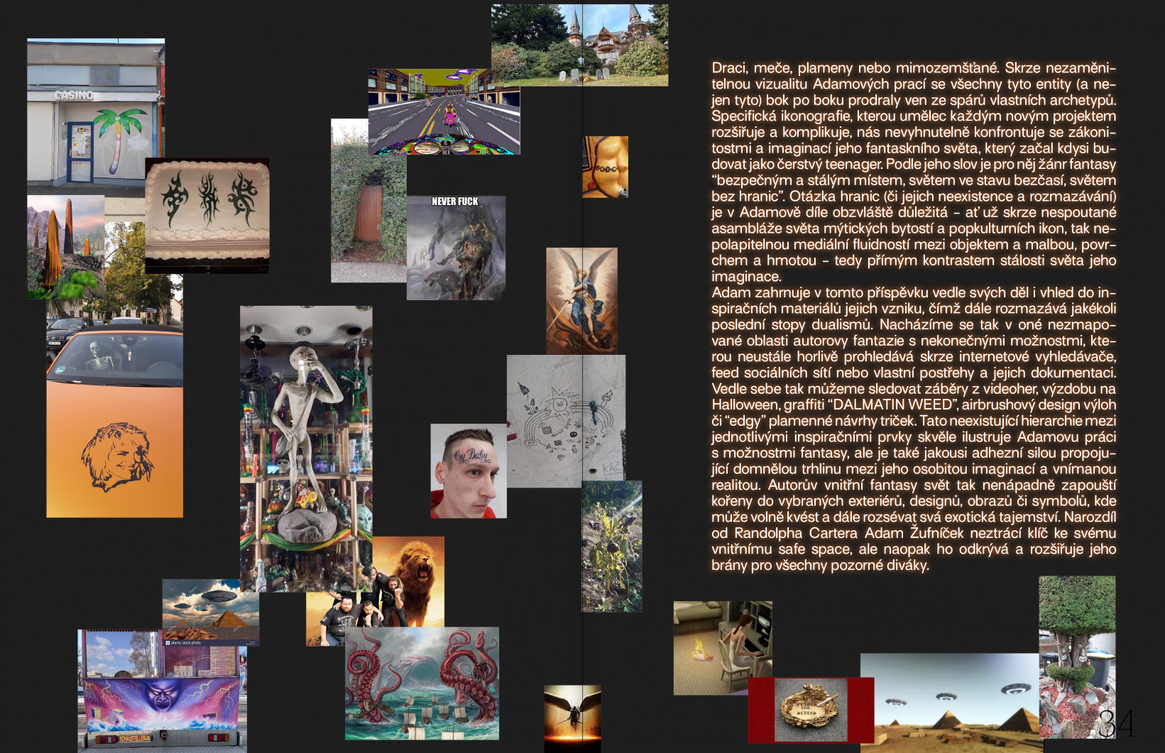 Adam Žufníček je studentem Ateliéru malby 3 Patricie Fexové a Veroniky Vlkové. V poslední době se i díky autorově neúprosnému pracovnímu tempu jeho tvorba objevuje v řadě zajímavých galerií (jen v době chystání tohoto příspěvku současně připravoval výstavy pro Galerii ART, Postpost gallery, prostor39 a KS Omega Brno) a úspěšně se tak zasazuje do scény současného českého umění.